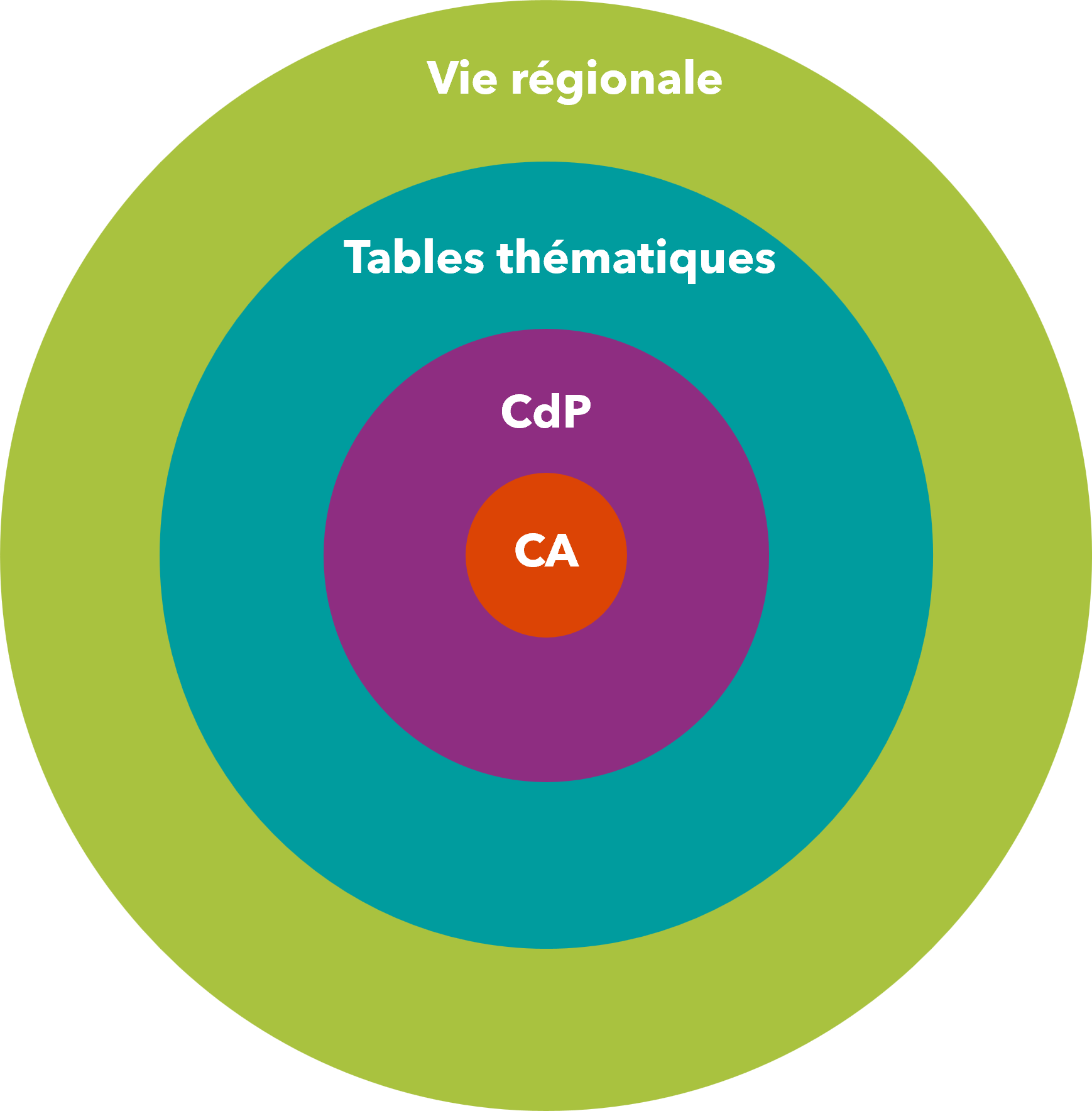 Les CdP : Réfléchissent stratégiquement aux enjeux et besoins prioritaires, selon les informations transmises par la Vie régionale et les tables thématiques, avec une vision provinciale, pour identifier des solutions et projets et émettent leurs recommandations au CA.